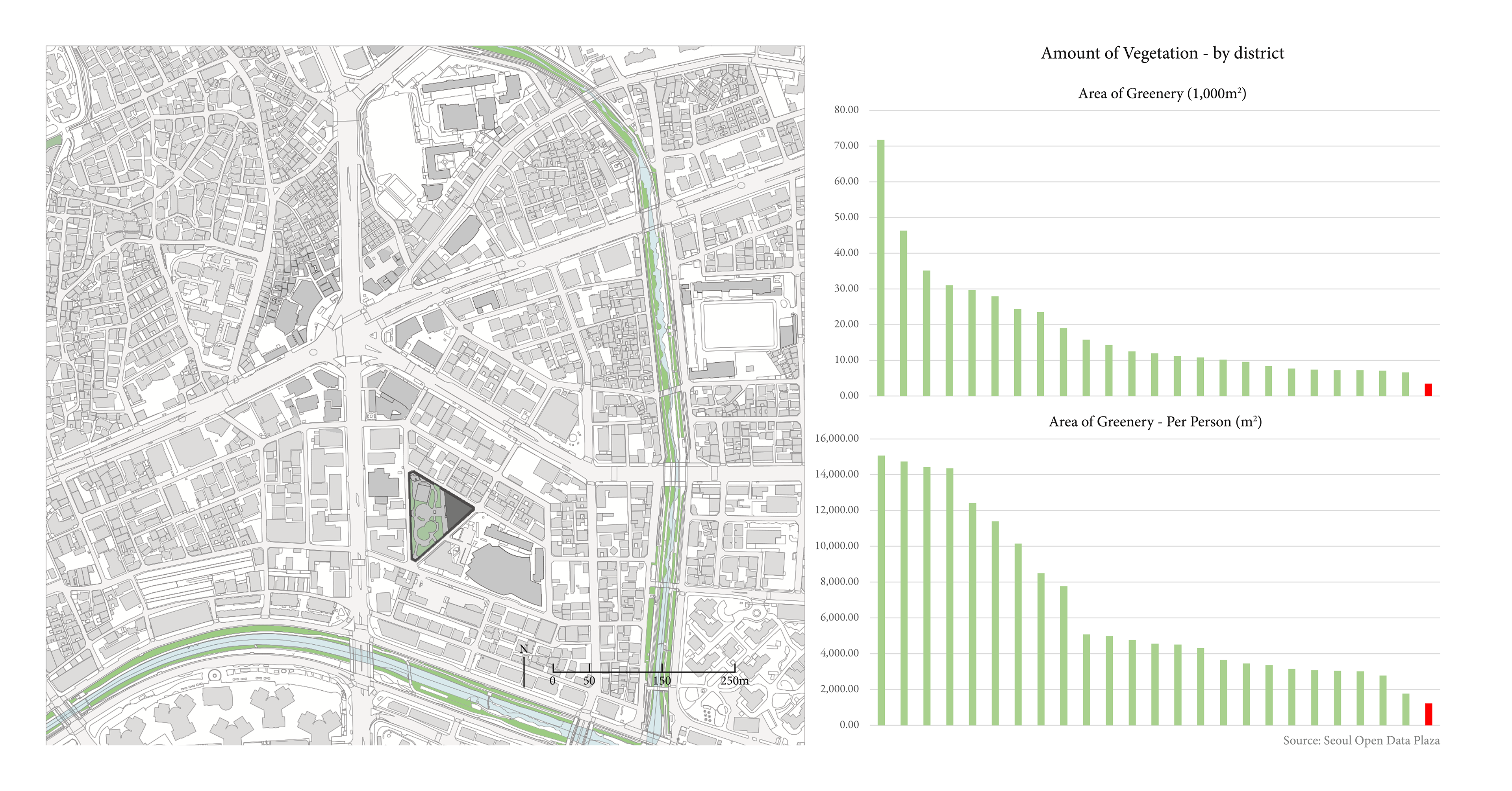 Lack of Vegetation in Dongdaemun-gu, compared to other districts