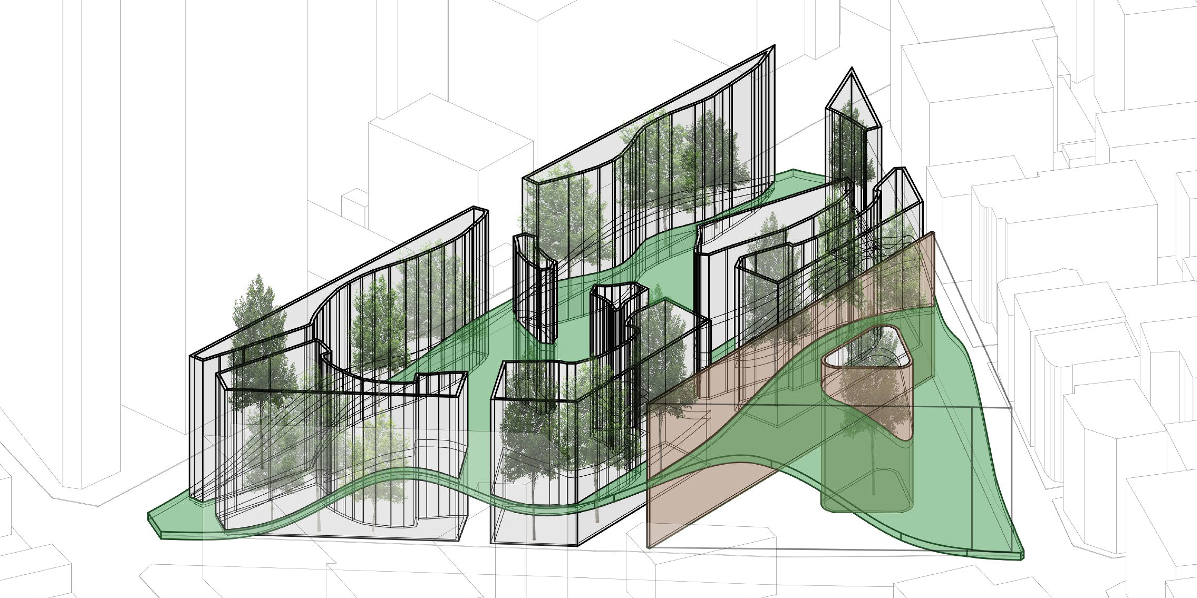 Nature Library: Trees and Hills creating Forest-like space