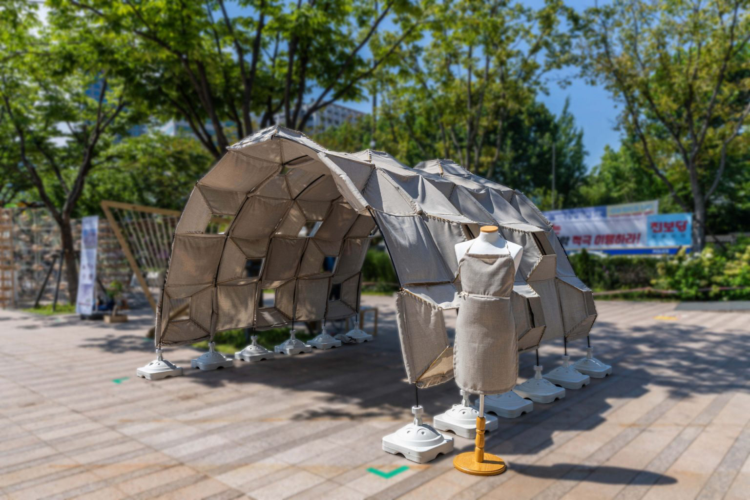 Fabric used in the pavilion works as main module cladding to achieve the goal of key function, ‘rest’.