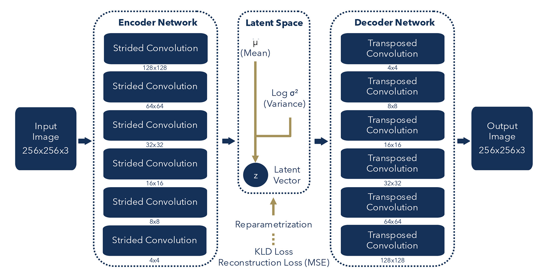Schematic Diagram of Convolutional Variational Auto Encoder (C-VAE) for Image Processing